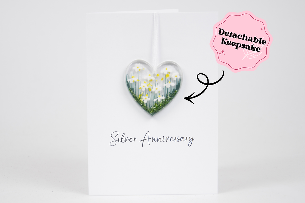 Detachable Fused Glass Flower Heart Greeting Card - Silver Anniversary